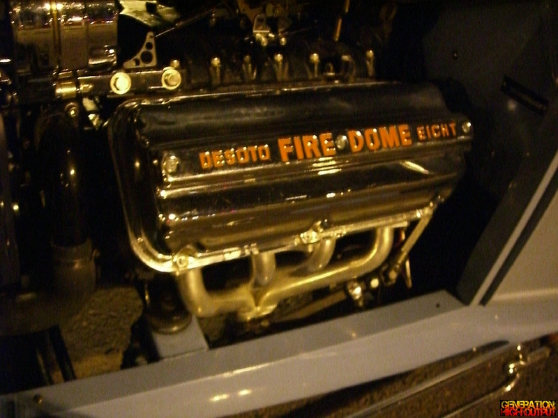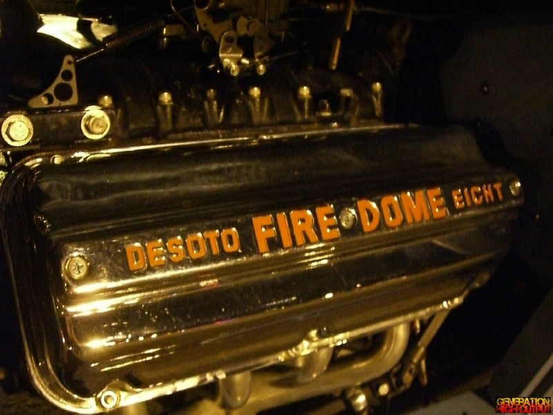 The Desoto Fire Dome came in various displacements, from 276 all the way up to 345 cubic inches and made anywhere from 160 to 345hp stock. Unfortunately the owner was busy talking to someone else, and I didn’t want to dig around on it to look for casting numbers, so I honestly can not tell what displacement it is… which is too bad.