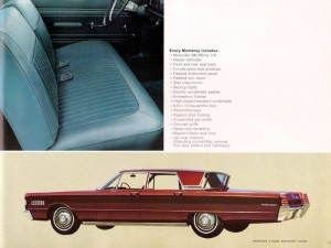 The Monterey had a more “slab sided” look than the Galaxie, and it had horizontal headlamps compared to the Galxie’s stacked headlamps. Mercury also had an exclusive 410 cubic inch (6.7L) engine starting in 1966, which was available on the Monterey and was never available in the Galaxie.
