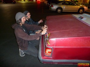 The whole reason for buying the car was to make it into a convertible, just like we did with the Volkswagen Rabbit. Working at night with some lights and a Harbor Freight sawzall, we went to work removing the roof. It was a noisy, jarring, and messy process. Rather than remove the side and back windows, we opted to break them out. Although we vacuumed out as much as we could, we are still finding bits of glass months later.