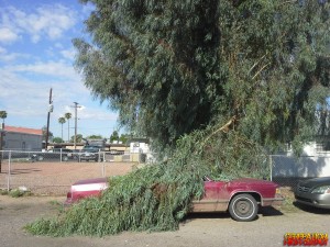 • Sep 16 – A large tree branch fell on the car. It survived without a scratch!