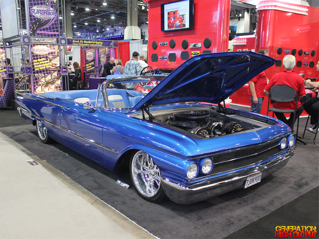 One of my favorite cars at SEMA 2014 was Steve Strope’s gorgeous 1967 Ford Fairlane. The blue and gold color combination was simply stunning. I had a very similar reaction at SEMA 2015 when I came across this 1961 Ford Sunliner at the Custom Auto Sound booth. What can I say: I think I have a thing for Sixties Fords in blue!