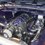 I couldn’t find a lot of details on the truck, but I did notice a newer generation LS engine swapped under the hood along with a color-matched intake manifold and valve covers. The whole thing looked very clean in the engine bay with the smoothed firewall. The truck was equipped with Doug Thorley headers, a Painless wiring harness, and an IDIDIT steering column with Dakota Digital gauges.