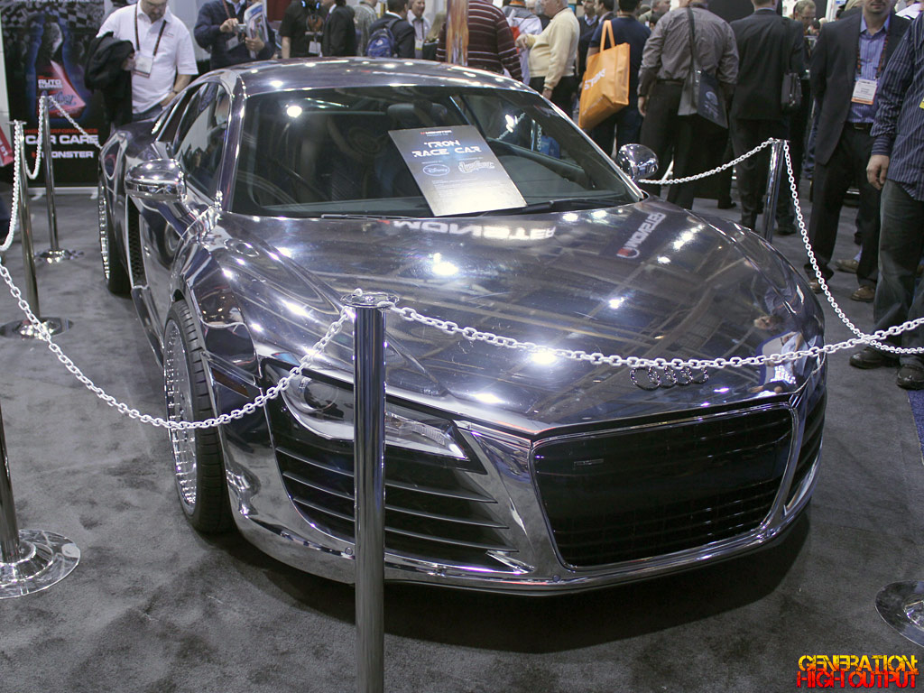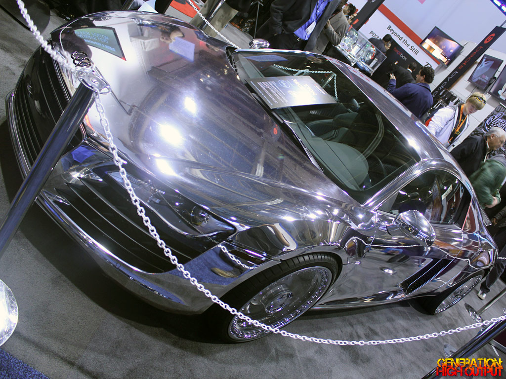 At the 2011 International CES Show in Las Vegas, I saw a couple of cool cars at the Convention Center. There was an all-chrome Audi R8 from the movie Tron, and a Lamborghini Murcielago roadster from Platinum Wireless. I also spotted a Chevrolet Volt and the new Ford F150 pickup featuring the EcoBoost V6 engine.