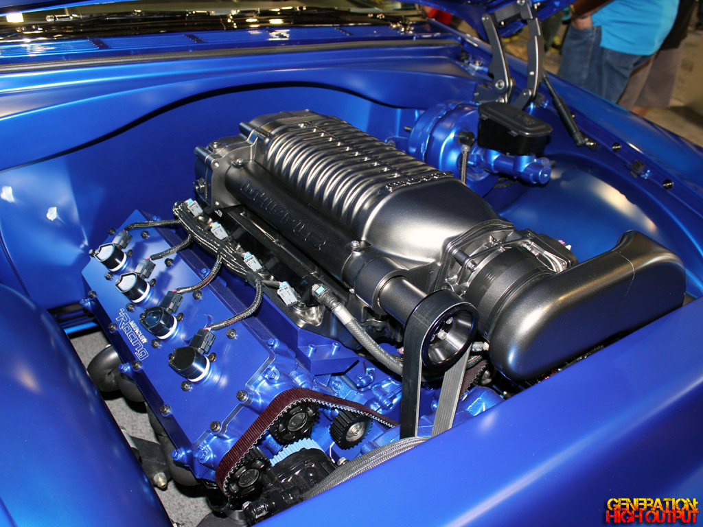 This is one big, bold, and blue ride. It features a Chevrolet LS engine from Mercury Racing and a Bowler 4L80E automatic transmission.
