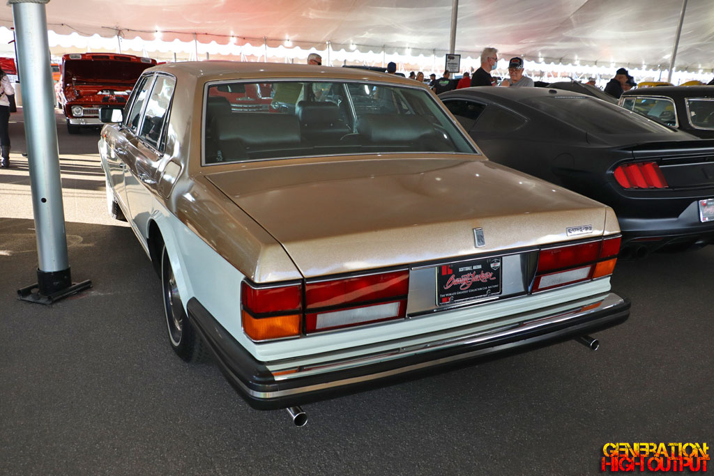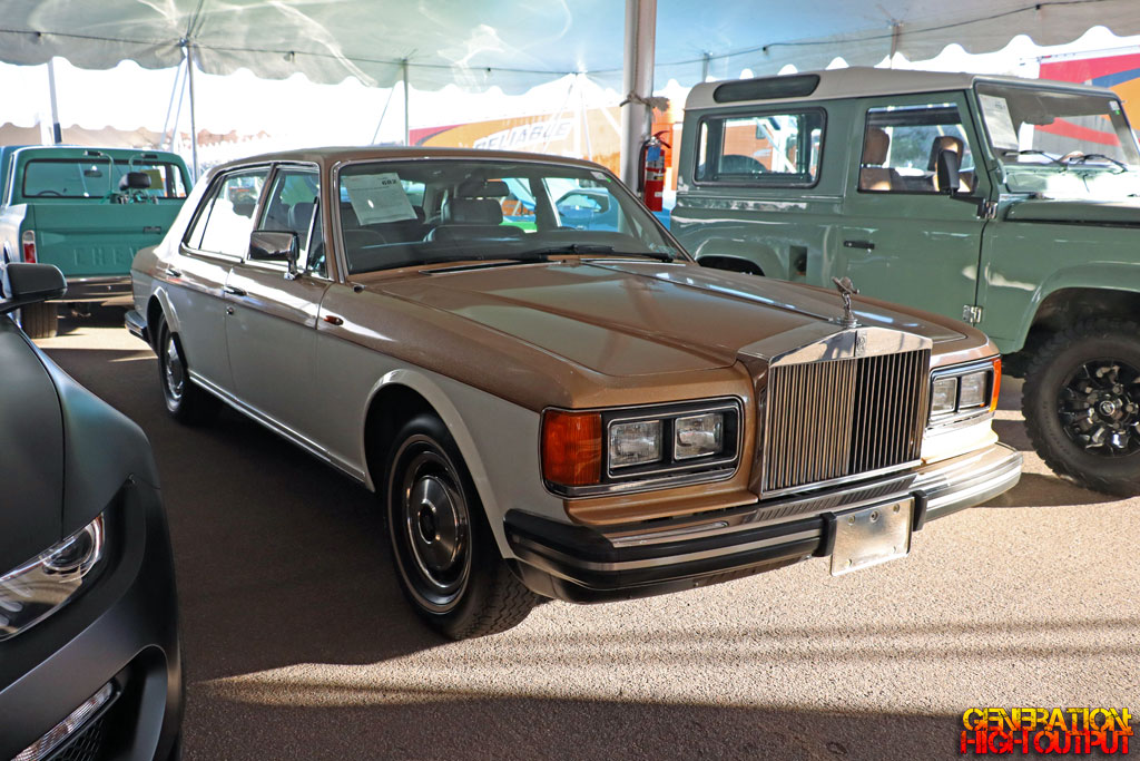 Every Rolls-Royce automobile is special, but this 1982 Silver Spur is a little extra special. The car features two-tone metallic white and gold with a dark tobacco leather interior.