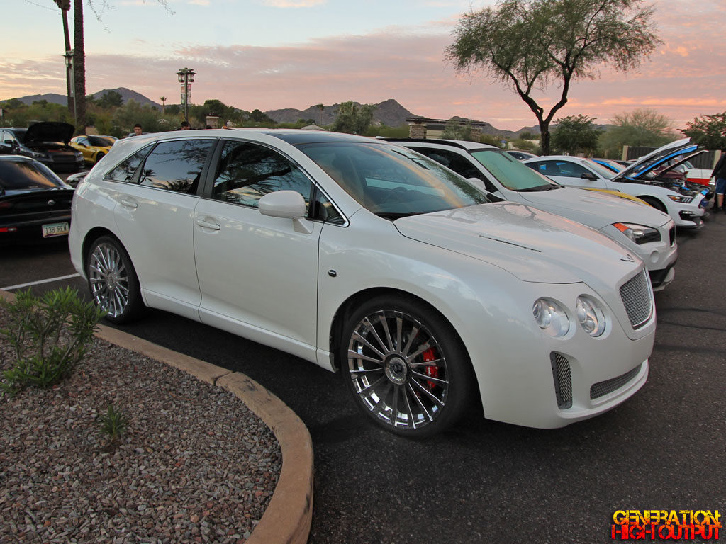 This unusual SUV was spotted by the Generation High Output staff at a Cars and Coffee event in Scottsdale in January 2017. The car is a 2011 Toyota Venza crossover SUV which has been converted to a Bentley Continental front and rear end. It appears to have genuine Bentley headlights and grille, and the body and paint work looks quite well done. If you want to live the baller lifestyle but are on a Toyota budget, this is the car for you.